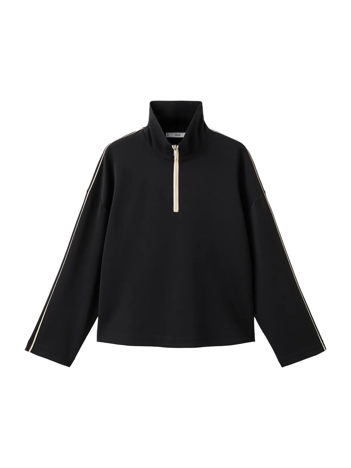 Design: Gevoerde zoom/rand, Zijdelingse strepen, Halve rits; Type sluiting: Ritssluiting; Materiaal: Sweatstof; Halstype: Opstaande kraag; Motief: Effen; Extra's: Op staal naden; Pasvorm: Losse pasvorm; Armlengte: Lange mouw; Lengte: Normale lengte