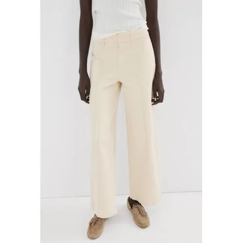 Ga voor een moderne, ontspannen look met deze beige Mango jeans. De pantalonstijl met wide leg geeft een recht en ruim silhouet, terwijl de hoge taille je middel duidelijk accentueert. Gemaakt van een denimachtige katoenen stof met een beetje stretch zorgt de broek voor een aansluitende pasvorm zonder strak te voelen. De standaardlengte met cropped effect en een binnenbeenlengte van 76 cm zorgt voor een frisse, lichte uitstraling, passend bij het nieuwe seizoen.Eigenschappen die je elke dag draagt Wide leg ontwerp voor een luchtige, rechte pijp Hoge taille met riemlussen, geschikt voor je favoriete riem Denimachtige katoenen stof met comfortabele elasticiteit Stijlvolle pantalonlook met blinde knoop, haak- en ritssluiting 5-pocket model met twee achterzakken en praktische voorzakken Beige effen kleur die makkelijk te combineren is Cropped jeans met binnenlengte 76 cm, geschikt voor sneakers of sandalen Beschikbaar in standaard- en plusmaten voor een brede maatrangeCropped wide leg voor al je dagelijkse outfitsDeze cropped jeans uit de Daily collectie is een praktische basis voor je garderobe. Combineer met een eenvoudig T-shirt en sneakers voor een relaxte dag, of draag er een blouse en loafers bij voor een nette maar comfortabele kantooroutfit.Stijlvol design van MangoMango staat bekend om eigentijdse collecties met een heldere, modische uitstraling. Met aandacht voor pasvorm en materialen ontwerpt Mango kleding die moeiteloos in je dagelijkse leven past en seizoen na seizoen draagbaar blijft.Een veelzijdige wide leg jeans die jouw garderobe fris en stijlvol aanvult.