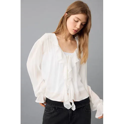 Deze MANGO TEEN meisjesblouse van vloeiende stof is een lichte, luchtige basic voor de garderobe. De naturel witte kleur combineert eenvoudig met verschillende broeken en rokken, terwijl de rechte pasvorm comfortabel valt. De V-hals met striksluiting en ruches geeft een speels accent, zonder dat het te opvallend wordt. Door de semi-transparante kwaliteit is een hemdje eronder een praktische keuze.Details die het verschil maken Gemaakt van 100% viscose, een soepel vallend materiaal dat zacht aanvoelt Rechte pasvorm voor een ontspannen, comfortabele look V-hals met striksluiting en ruchesversiering langs de hals Lange, rechte mouwen met manchetten afgewerkt met ruche Effen naturel witte kleur, eenvoudig te combineren Semi-transparante stof, ideaal met een topje eronder Zonder zakken voor een rustig en strak front Wordt geleverd als losse blouse, één stuk in de verpakkingVeelzijdig voor school en vrije tijdDeze blouse past goed bij zowel een nette broek als een casual jeans. Voor school kan de blouse gecombineerd worden met een slim fit broek en sneakers, terwijl in het weekend een korte broek of rok er ook goed bij staat. De lichte stof maakt het een fijn item voor binnen en voor mildere dagen buiten.MANGO TEEN: moderne stijl voor jonge meisjesMANGO TEEN richt zich op kleding die aansluit bij de laatste trends, maar toch draagbaar blijft voor elke dag. De ontwerpen zijn afgestemd op jonge meisjes die graag kiezen voor eigentijdse modellen met doordachte details. Met deze blouse haal je een kledingstuk in huis dat zorgvuldig is ontworpen met aandacht voor pasvorm en materiaal.Een lichte, soepel vallende blouse die makkelijk meegaat in het dagelijkse ritme.