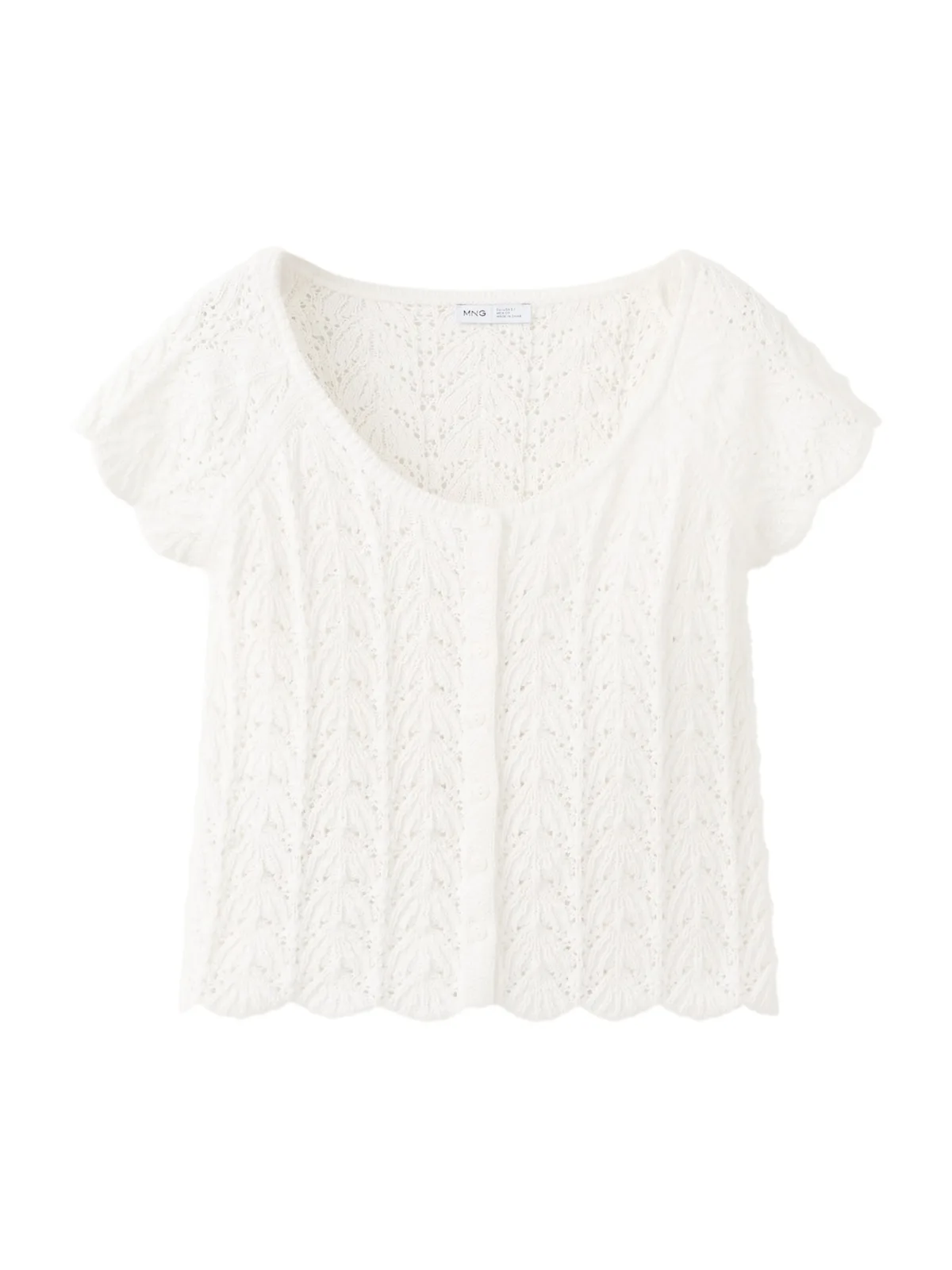 Op zoek naar een luchtig shirt dat net even anders is dan een basic T-shirt voor je tiener? Dit MANGO TEEN meisjes T-shirt in ecru valt op door de opengewerkte brei en verfijnde details. De katoenen stof voelt soepel aan en is ideaal voor warmere dagen, terwijl de ronde hals en korte mouwen zorgen voor een relaxte, dagelijkse look.Verfijnde details voor elke dag Opengewerkte brei: geeft het T-shirt een lichte, luchtige uitstraling Effen ecru kleur: makkelijk te combineren met jeans, shorts of een rok Ronde hals en korte mouw: comfortabel en ideaal voor alledaags gebruik Voorste knoopsluiting: praktisch aan- en uittrekken en een speels accent Geschulpte details: subtiele afwerking langs de randen voor een zachte, meisjesachtige look Rechte mouwen: vallen soepel langs de armen voor een ontspannen pasvorm Tienermaten: speciaal afgestemd op het lichaam van opgroeiende meisjesGemakkelijk te stylen in verschillende looksDit T-shirt past net zo goed bij een high waist jeans als bij een zwierige rok. Draag het met sneakers voor een casual dag naar school of met sandalen tijdens een zomerse middag. De open structuur van het breisel maakt het ook fijn om te dragen over een topje of hemdje.MANGO TEEN voor moderne tienersMANGO TEEN richt zich op tieners die graag meebewegen met trends, maar wel behoefte hebben aan draagbare kleding voor elke dag. De collectie combineert modieuze details met comfortabele pasvormen, zodat outfits er verzorgd uitzien en tegelijk fijn aanvoelen. Dit T-shirt past daar precies in en vormt een mooie basis voor allerlei combinaties.Een stijlvol en luchtig shirt waar je tiener vaak naar zal grijpen.