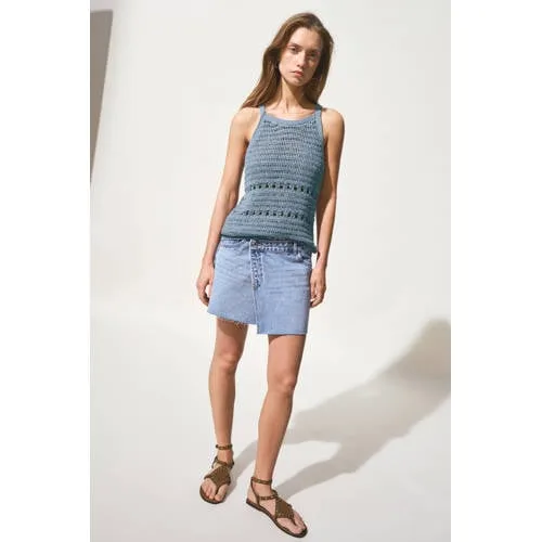 Deze gehaakte top voor meisjes van MANGO TEEN is een luchtig item dat direct opvalt door het open breisel en de zachte grijsblauwe kleur. De rechte snit zorgt voor een ontspannen uitstraling, terwijl de ronde hals en smalle bandjes het ontwerp fijn en vrouwelijk maken. Ideaal voor warme dagen of als speelse laag over een T-shirt of bikini.Luchtig breisel met subtiele details Opengewerkt breisel dat licht en luchtig aanvoelt op de huid Rechte pasvorm voor een comfortabele, nonchalante look Ronde hals en bandjes geven een verfijnd, modern silhouet Effen grijsblauwe kleur die makkelijk te combineren is Gemaakt van acryl en polyamide voor een zachte, soepele touch Mouwloos model, ideaal voor lente en zomerGemakkelijk te combineren in elke tiener garderobeDeze top past goed bij een hoge jeans, een korte broek of een zwierige rok. Ook leuk over een strak hemdje of bikini voor een gelaagde look. Zo kan je tiener eenvoudig variëren van schooldag tot vakantiegevoel.MANGO TEEN: stijl voor jonge trendsettersMANGO TEEN biedt mode speciaal ontworpen voor tieners, met aandacht voor actuele trends en draagbaar comfort. De collecties sluiten aan bij de stijl van nu, zodat jonge meiden zich zelfstandig en zelfverzekerd kunnen kleden met items die er modern uitzien en prettig aanvoelen.Een frisse, gehaakte top die moeiteloos meegaat in het dagelijks leven van je tiener.