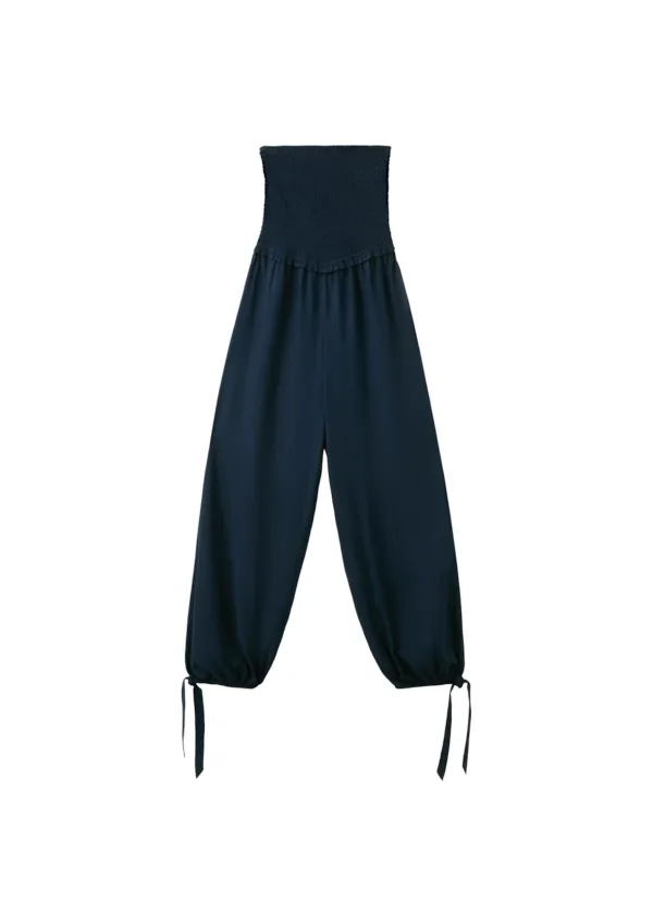 Deze donkerblauwe MANGO TEEN jumpsuit voor meisjes is een luchtige keuze voor warme dagen en avonden. De vloeiende stof valt soepel om het lichaam en het strapless ontwerp geeft een frisse, zomerse look. Door de elastische boord blijft de bovenkant goed op zijn plek, terwijl de ballonvormige pijpen voor een speelse en comfortabele fit zorgen. De strikdetails bij de zoom maken het geheel extra verfijnd.Lichte stof en speelse details Gemaakt van 100% viscose, een zachte en soepel vallende stof Strapless model met smockwerk op de borst zodat het mooi aansluit Ballonontwerp met strikdetails bij de zoom voor een speels effect Elastische boord in de taille voor een comfortabele pasvorm Lang model, ideaal als alternatief voor een jurk of set Effen donkerblauwe kleur, makkelijk te combineren met schoenen en accessoires Geen sluiting en geen zakken, zodat de stof mooi glad blijft vallenGemakkelijk aan, klaar om te gaanDe jumpsuit trek je eenvoudig aan zonder rits of knopen, fijn voor drukke ochtenden. Combineer met sandalen en een luchtig vestje voor naar school, of met sneakers voor een relaxte dag in het weekend.Jeugdige stijl van MANGO TEENMANGO TEEN richt zich op tieners die houden van modieuze, maar draagbare kleding. De ontwerpen volgen de laatste trends en blijven toch praktisch voor alledaags gebruik. Met deze jumpsuit haal je een stijlvol en comfortabel item in huis waar je kind veel plezier van heeft.Een fijne basis voor zomerse dagen waarop comfort en stijl samenkomen.