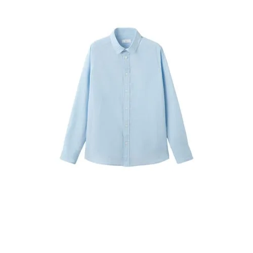 Voor een nette maar toch relaxte look is dit MANGO TEEN jongens overhemd van katoen en linnen een fijne basic voor elke tienergarderobe. De lichtblauwe kleur zorgt voor een frisse uitstraling en laat zich makkelijk combineren met een jeans, chino of korte broek. De rechte snit en klassieke kraag geven het overhemd een rustige, verzorgde look die past bij zowel schooldagen als speciale momenten.Luchtige stof en tijdloze details Gemaakt van een luchtige stof met katoen en linnen, fijn voor warmere dagen of drukke momenten Rechte pasvorm voor een comfortabele fit met genoeg bewegingsvrijheid Klassieke overhemdkraag voor een verzorgde uitstraling Lange mouwen met knoopmanchetten, eenvoudig op te rollen voor een meer casual look Volledige knoopsluiting aan de voorkant, makkelijk aan en uit te trekken Effen lichtblauwe kleur, goed te combineren met verschillende stijlen en kleurenVan schooldag tot familiefeestDit overhemd past goed bij gelegenheden waarbij hij er net wat gekleder bij mag lopen, zonder dat het te formeel voelt. Draag het ingestopt in een chino met nette schoenen voor een feestelijke outfit of open over een T-shirt met sneakers voor een meer ontspannen look.MANGO TEEN: stijl voor tienersMANGO TEEN richt zich speciaal op tieners, met kleding die modieuze details combineert met draagbaar gemak. De collecties sluiten aan bij de laatste trends, maar blijven tegelijk praktisch voor alledaags gebruik. Zo kies je voor stukken die er goed uitzien en prettig aanvoelen in het dagelijkse leven van een tiener.Een veelzijdig overhemd dat makkelijk meedraait in elke tienergarderobe.