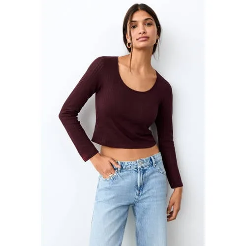 MANGO TEEN longsleeve donkerrood fijn gebreid
