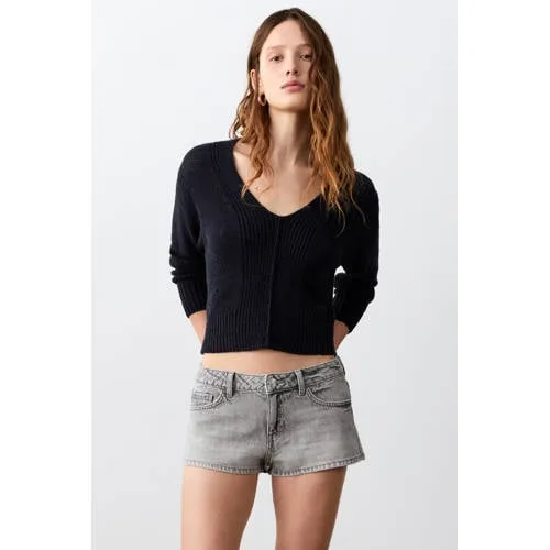 Deze grijze denim korte broek voor tienermeisjes van MANGO TEEN is een praktische basic voor warme dagen. De shorts zijn gemaakt van 100% katoen in een spijkerstofachtige kwaliteit, waardoor de stof stevig aanvoelt en tegelijkertijd soepel meebeweegt. De micro-lengte en de Super Low Waist tailleband geven een moderne, jeugdige uitstraling die goed past bij een casual look.Details die het verschil maken Gemaakt van 100% katoen voor een ademende, comfortabele feel Rechte snit met micro-silhouet voor een korte, eigentijdse fit Super Low Waist tailleband voor een lage, trendy taille 5-pocket model met twee achterzakken, twee steekzakken en een muntzakje Rits- en knoopsluiting voor een stevige en vertrouwde sluiting Effen grey denim kleur die makkelijk te combineren is Speciaal ontworpen voor tienermeisjes binnen de Tiener maatboogCasual styling voor elke dagDeze grey denim korte broek is geschikt voor school, vrije tijd of vakanties. Combineer met een T-shirt en sneakers voor een relaxte dag, of met een luchtige blouse en sandalen voor een iets meer aangeklede outfit. De effen kleur maakt het makkelijk om te spelen met prints en kleuren in de rest van de look.MANGO TEEN: stijl voor jonge trendliefhebbersMANGO TEEN richt zich op tieners die houden van mode en graag hun eigen stijl ontdekken. De collecties sluiten aan op actuele trends, maar blijven tegelijkertijd draagbaar in het dagelijks leven. Met deze korte broek haal je een praktisch item met een modieuze uitstraling in huis dat moeiteloos aansluit bij andere favoriete items uit de kast.Een moderne denim basic waar je tiener eenvoudig haar eigen stijl mee laat zien.