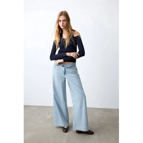 MANGO TEEN low waist wide leg jeans light blue denim Prijzen