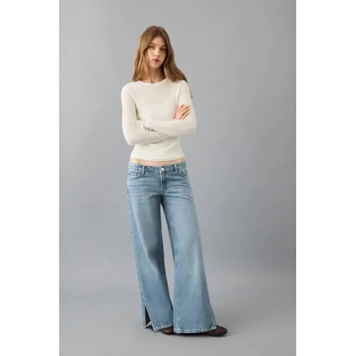 MANGO TEEN low waist wide leg jeans medium blue denim