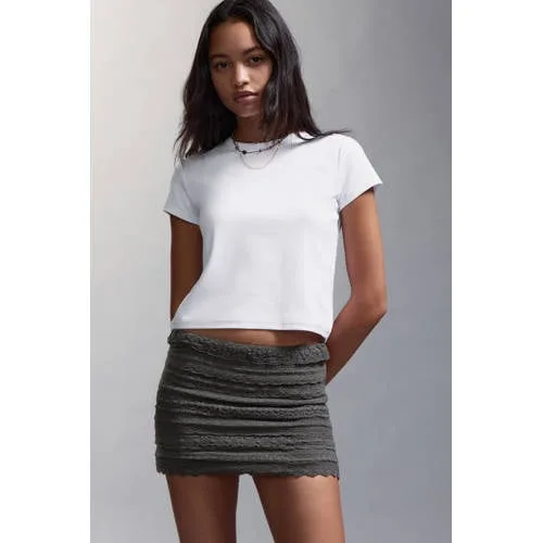 Deze katoenen meisjes mini rok van MANGO TEEN is een luchtig en speels basisstuk voor warme dagen. De rok is gemaakt van 100% katoen en heeft een korte, rechte snit die soepel langs het lichaam valt. De antraciet kleur geeft een rustige uitstraling, terwijl de blonde kant en ruches zorgen voor een verfijnd detail. Door de elastische taille zit de rok comfortabel en blijft hij goed op zijn plek tijdens bewegen en spelen.Verfijnde details in katoen Gemaakt van 100% katoen, een zachte en ademende stof voor dagelijks draagcomfort Kort ontwerp met rechte snit, ideaal voor zomerse dagen of laagjes met een maillot Elastische tailleband zonder sluiting, eenvoudig aan en uit te trekken Blonde kanten inzet en broderie voor een subtiel, decoratief effect Ruches en gefestonneerde onderkant geven de zoom een speels golvend randje Effen antraciet kleur, makkelijk te combineren met T-shirts, tops en truienGemakkelijk te stylen in alledaagse outfitsDe rok combineert makkelijk met basics uit de kast. Draag hem met een simpel T-shirt en sneakers voor schooldagen of met een fijn gebreide trui en laarsjes op koelere dagen. Door de elastische taille groeit de rok een tijdje mee in pasvorm.MANGO TEEN voor moderne kindermodeMANGO TEEN biedt kindermode die aansluit bij de trends van nu, met aandacht voor draagbaarheid en vormgeving. De collecties combineren herkenbare pasvormen met eigentijdse details, zodat kinderen kleding kunnen dragen die prettig zit en er verzorgd uitziet.Een veelzijdige rok die eenvoudig deel wordt van favoriete outfits.
