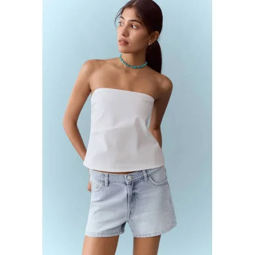 Deze lichtblauwe denim short is een praktische basic voor de garderobe van elke tiener. De denim korte broek voor meiden heeft een klassieke rechte snit en een kort model, waardoor deze short makkelijk combineert met T-shirts, tops en hoodies. Gemaakt van 100% katoen, met de herkenbare jeanslook in light blue denim, voelt de stof stevig maar toch soepel aan.Denim short met strass details Gemaakt van 100% katoen in denim kwaliteit Rechte snit en kort ontwerp voor een klassieke jeanslook Low Waist taille voor een moderne pasvorm op de heup Vijf zakken in 5-pocket stijl, inclusief twee achterzakken Lussen voor riem zodat er eenvoudig een riem aan toegevoegd kan worden Rits- en knoopsluiting aan de voorkant Subtiele strass steentjes als detail voor een speelse, glinsterende touch Effen uitvoering in de kleur light blue denim Speciaal ontworpen voor de tiener maatboogGeschikt voor alledaagse looksDe denim short is geschikt voor dagelijkse outfits, naar school of in de vrije tijd. In combinatie met sneakers en een losvallend T-shirt ontstaat een ontspannen look. Op warmere dagen is de korte lengte comfortabel, terwijl de stevige denim stof genoeg ondersteuning geeft tijdens bewegen en spelen.MANGO TEEN voor jonge stijlliefhebbersMANGO TEEN is de tienerlijn van MANGO en richt zich op jonge modellen met een eigentijdse stijl. De collecties volgen de trends uit de MANGO damescollectie, maar zijn aangepast aan het dagelijks leven van tieners. Zo biedt MANGO TEEN mode die makkelijk te dragen is en goed past in een moderne, jeugdige kledingkast.Een praktische denim short met speelse details die het hele seizoen door gedragen kan worden.
