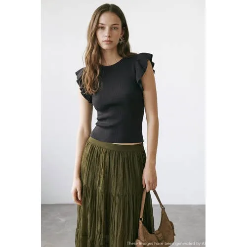 Dit antracietkleurige MANGO TEEN T-shirt meisjes is een praktische basic met een stijlvol accent. De geribbelde stof en het getailleerde ontwerp sluiten mooi aan op het lichaam en zorgen voor een verzorgd geheel. De ruches op de korte mouwen vormen een subtiel detail, terwijl de gekruiste rug het T-shirt een bijzondere achterkant geeft. Geschikt voor schooldagen, vrije tijd of een gezellige middag met vriendinnen.Vrouwelijke details en comfortabel materiaal Gemaakt van 70% viscose en 30% polyamide, voelt zacht en soepel aan op de huid Geribbelde stof voor een aansluitende pasvorm die goed in vorm blijft Getailleerd ontwerp dat het silhouet volgt zonder te knellen Ronde hals en korte mouwen voor een rustige basis Ruches op de mouwen voor een speels detail Gekruiste rug als extra detail aan de achterkant Effen kleur antraciet, makkelijk te combineren met jeans, rok of short Wordt geleverd per stuk, zonder zakken aan de voorkantEveryday top voor veel combinatiesDit T-shirt is geschikt voor alledaags gebruik. In combinatie met een hoge jeans of een rok ontstaat eenvoudig een complete outfit. De effen kleur maakt het ook handig om onder een vest of jasje te dragen zonder dat het druk oogt.MANGO TEEN voor moderne meidenMANGO TEEN richt zich op jonge meiden die graag kleding dragen die past bij de actuele mode en tegelijk comfortabel is in het dagelijks leven. De ontwerpen volgen de laatste trends en blijven goed te combineren met andere items in de garderobe. Met dit T-shirt komt er een praktische basic bij in de kast.Een T-shirt dat makkelijk wordt gekozen bij het samenstellen van een dagelijkse outfit.