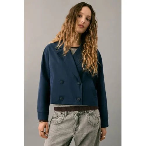 Deze blauwe MANGO TEEN meisjes trenchcoat is een korte buitenjas die geschikt is voor het voorjaar en frisse dagen. De jas heeft de uitstraling van een klassieke trenchcoat, maar dan in een korter model. Door de polyester stof en de volledige voering functioneert deze jas goed als tussenlaag voor alledaagse momenten, zoals de weg naar school of een dag in het weekend.Korte trenchcoat met herkenbare details Kort model dat rond de heup valt, waardoor bewegen en buitenspelen gemakkelijk blijft Polyester buitenkant met voering voor extra comfort op winderige of koelere dagen Reverskraag met nette kraagvorm voor een tijdloze, verzorgde look Dubbele rij knopen aan de voorkant, geïnspireerd op de klassieke trenchcoat Lange mouwen met manchetten met omslag en knoop voor een nette afwerking Twee voorzakken om kleine spullen in op te bergen of handen warm te houden Te gebruiken als tussenjas in het lenteseizoenGeschikt voor school, spelen en samen op padDeze meisjesjas kan dagelijks worden gedragen in het voorjaar en op mildere dagen in andere seizoenen. De knoopsluiting is eenvoudig te openen en te sluiten en de kortere lengte is praktisch op de fiets of tijdens spelmomenten. De blauwe kleur laat zich goed combineren met verschillende kledingstijlen.MANGO TEEN voor modebewuste meidenMANGO TEEN richt zich op kinderen en tieners die graag kleding dragen die aansluit bij actuele trends en tegelijkertijd comfortabel zit. Het merk verwerkt moderne details in draagbare modellen, zodat de collectie past bij het actieve dagelijkse leven van opgroeiende meisjes.Een tussenjas die het karakter van een trenchcoat combineert met dagelijks draaggemak voor momenten buiten.
