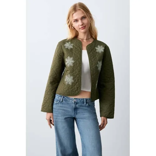 Deze lichte MANGO TEEN meisjes jas combineert een luchtige look met subtiele details. De jas is gemaakt van 100% katoenen stof en heeft een gewatteerde structuur die net wat extra comfort en vorm geeft, zonder zwaar aan te voelen. De kaki kleur zorgt voor een rustige basis, terwijl het fijne bloemenborduursel aan de voorkant een speelse en verzorgde uitstraling geeft. Ideaal voor frisse ochtenden, avonden of wisselvallige zomerdagen.Lichte gewatteerde zomerjas zonder sluiting Gemaakt van 100% katoen, prettig draagbaar in het zomerseizoen Gewatteerde stof met quilted patroon voor een zacht en licht gevoel Zonder sluiting, daardoor makkelijk open te dragen over een T-shirt of jurk Lange mouwen voor net wat extra warmte op koelere momenten Openvallende hals die mooi aansluit bij verschillende halslijnen Fijne bloemenborduursels als rustig maar opvallend detail Zonder zakken, wat zorgt voor een slanke, gestroomlijnde vorm Kleur kaki, eenvoudig te combineren met zowel basics als printsVoor luchtige laagjes in de zomerDeze quilted zomerjas is geschikt als extra laagje over T-shirts, blouses of zomerjurkjes. De open voorkant maakt aan- en uittrekken eenvoudig, wat handig is op dagen waarop de temperatuur wisselt. Door de lichte gewatteerde stof blijft het draaggevoel luchtig, terwijl de armen toch bedekt zijn.MANGO TEEN voor eigentijdse kidsMANGO TEEN richt zich op kinderen die houden van moderne, draagbare mode. De collecties volgen actuele trends, maar blijven comfortabel en geschikt voor dagelijks gebruik. Met deze jas haal je een kledingstuk in huis dat is afgestemd op het leven van actieve meisjes, met aandacht voor materiaalkeuze en detail.Een luchtig gewatteerd zomerjasje dat elke outfit rustig en verzorgd afmaakt.