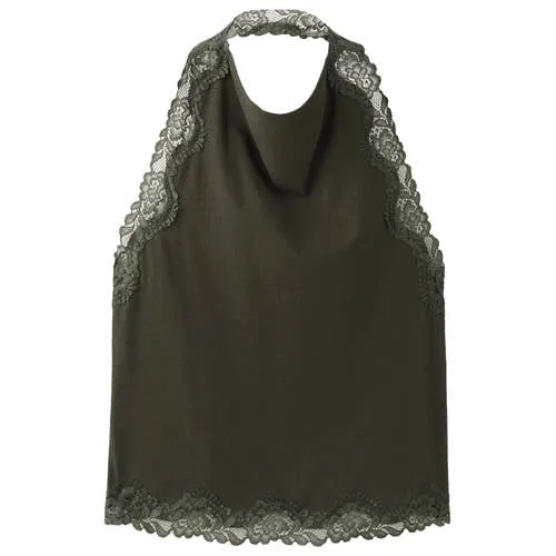 Deze zomerse donkergroene haltertop van katoen van Mango is een lichte, luchtige basic met verfijnde details. De rechte snit valt soepel langs je lichaam en de mouwloze halternek legt het accent op je schouders. Gemaakt van 100% katoen voelt de stof prettig aan op de huid, ook op warme dagen.Verfijnde details in kant Gemaakt van 100% katoen voor een zachte, ademende feel Rechte pasvorm die comfortabel valt en makkelijk te stylen is Kanten biesjes langs de bovenrand voor een subtiel vrouwelijk accent Halternek met open rug voor een zomerse, luchtige uitstraling Mouwloos model dat veel bewegingsvrijheid biedt Zonder sluiting, je trekt de top eenvoudig over je hoofd aan Effen donkergroene kleur die goed combineert met denim, linnen of een lichte broekIdeaal voor warme zomerdagenDeze top past goed in je dagelijkse garderobe in de zomer. Combineer met een high waist jeans of een korte broek voor een casual look, of draag de top op een wijde pantalon voor een iets gekledere stijl. De open rug en halternek maken het een geschikte keuze voor zonnige terrassen, stedentrips en vakanties.Mango: eigentijdse stijl voor elke dagMango staat bekend om moderne collecties met een heldere, eigentijdse stijl. De ontwerpen sluiten aan bij de laatste trends en zijn tegelijk makkelijk te dragen in het dagelijks leven. Met deze top voeg je een zomerse basic toe aan je garderobe.Een lichte, kant afgewerkte zomertop die je het hele seizoen kunt dragen.