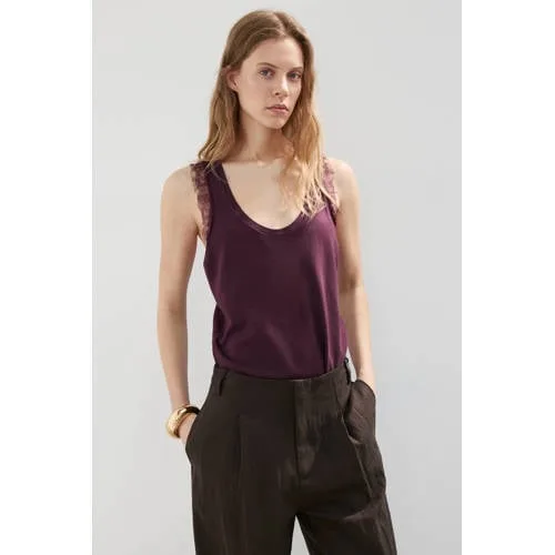 Deze donkerpaarse Mango dames top is een praktische basic met een vrouwelijke twist. Het zachte, fijne breisel valt soepel langs je lichaam en voelt prettig aan op de huid. De V-hals zorgt voor een open, luchtige uitstraling, terwijl de effen kleur de top makkelijk combineerbaar maakt met je favoriete broeken, rokken of shorts. Ideaal voor lente en zomer, maar ook goed te dragen onder een vest of blazer.Verfijnde details voor elke dag Gemaakt van 72% viscose voor een zachte, soepele touch Mouwloos model met rechte, brede bandjes die comfortabel op de schouders liggen Kantdetail op de rug voor een subtiel vrouwelijk accent Effen donkerpaarse kleur die eenvoudig te stylen is Zonder sluiting, zodat je de top gemakkelijk aantrekt Geschikt voor dagelijks gebruik dankzij het comfortabele breiselVeelzijdig in je garderobeDeze top past goed bij een rechte jeans voor een ontspannen look, maar ook bij een nette pantalon of rok voor een meer geklede outfit. Door de effen kleur is het een handige basis onder een openvallend overhemd of een luchtig vest in de avond.Mango: moderne stijl voor elke dagMango staat bekend om eigentijdse collecties met aandacht voor pasvorm en actuele trends. De ontwerpen zijn toegankelijk en goed te combineren, waardoor je eenvoudig een garderobe opbouwt die bij jouw dagelijkse leven past. Met deze top voeg je een praktische en verzorgde basic toe aan je kast.Een handige aanvulling voor dagen waarop je zonder moeite verzorgd voor de dag wilt komen.