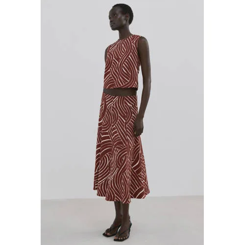 Geef je outfit een frisse update met deze Mango top dames met geometrische print. De rechte pasvorm en het korte, crop ontwerp geven een moderne uitstraling, terwijl de ronde hals en brede bandjes zorgen voor een rustige, uitgebalanceerde look. Door de all over print oogt de top meteen verzorgd en stijlvol, geschikt voor zowel casual als meer aangeklede momenten.Details die het verschil maken Rechte pasvorm voor een ontspannen, maar verzorgde uitstraling Crop ontwerp dat mooi valt op een hoge taille broek of rok Geometrische all over print voor een grafische look Ronde hals en mouwloos ontwerp met brede bandjes voor extra draagcomfort Knopen aan de achterkant als subtiel detail Zonder zakken voor een glad en clean silhouet Gemaakt van 75% viscose en 25% polyamide, wat zorgt voor een soepele stof met een mooie vallingCrop top voor veelzijdige combinatiesDeze top is goed te combineren met een hoge taille jeans, pantalon of rok. De rechte lijn en het kortere model laten de taille duidelijk uitkomen, terwijl de grafische print eenvoudig te combineren is met effen items.Mango: eigentijdse mode met aandacht voor detailMango staat bekend om moderne collecties met heldere lijnen en doordachte details. Deze top sluit daar naadloos op aan door het tijdloze silhouet en de zorgvuldige afwerking. Zo haal je een kledingstuk in huis dat je vaak en op verschillende manieren kunt dragen.Een eigentijdse basic die op verschillende manieren te combineren is.