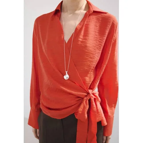 Deze Mango dames top met striksluiting in de taille geeft je dagelijkse outfit een verzorgde en vrouwelijke uitstraling. De rode kleur valt direct op, terwijl de rechte snit en klassieke overhemdkraag zorgen voor een rustige, tijdloze basis. Door de striksluiting kun je de taille subtiel accentueren of juist wat losser dragen, afhankelijk van het moment.Verfijnde details voor elke dag Rechte pasvorm die soepel om het lichaam valt Overhemdkraag voor een nette, moderne look Lange mouwen met knoopmanchetten voor een verzorgde afwerking Striksluiting om de taille voor een aanpasbare pasvorm Effen rood ontwerp dat rustig oogt en makkelijk te combineren is Gemaakt van 85% viscose en 15% polyamide voor een zachte, gladde touch Geschikt voor de dagelijkse collectie, ideaal voor het zomerseizoenVan kantoor tot casual momentDeze top past goed in een standaard garderobe voor elke dag. Combineer met een donkerblauwe jeans voor een relaxed effect of met een rechte broek voor een meer geklede look. De overhemdkraag en de lange mouwen maken het model geschikt voor zowel werk als casual afspraken.Mango: eigentijdse stijl met aandacht voor detailMango staat bekend om moderne collecties met heldere lijnen en doordachte details. De focus ligt op draagbare stukken die aansluiten bij een actieve levensstijl, met items die je makkelijk onderling kunt combineren.Een veelzijdige top die je garderobe op een stijlvolle en praktische manier aanvult.