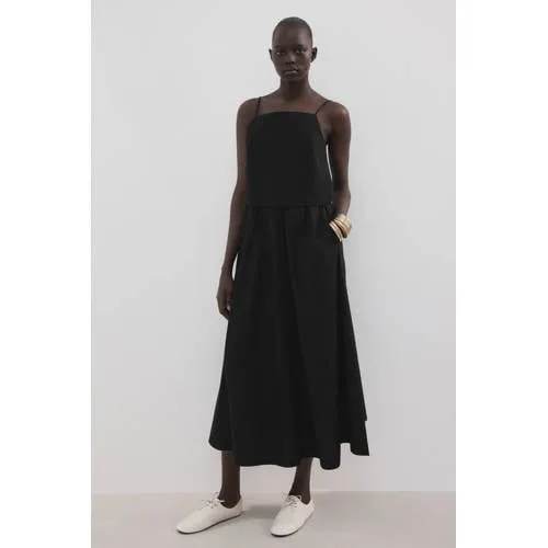 Deze zwarte cropped top van katoen van Mango is een luchtige basic voor zomerse dagen. Het korte model komt tot net boven de taille, sluit mooi aan en laat zich makkelijk combineren met je favoriete broeken en rokken. De effen zwarte kleur maakt de top geschikt voor zowel casual als iets gekledere momenten.Verfijnde details voor elke dag Gemaakt van 100% katoen voor een zachte, ademende touch op de huid Cropdesign dat tot boven de taille valt, ideaal voor hoge tailles Vierkante hals die de schouders subtiel accentueert Mouwloos ontwerp met fijne bandjes voor een lichte, zomerse look Zonder sluiting, zodat je de top eenvoudig aantrekt Effen zwarte kleur die makkelijk te combineren isVoor zomerse combinatiesDeze top past goed in een dagelijkse garderobe. Draag de top op een hoge jeans voor een ontspannen look of combineer met een linnen broek voor warme zomerdagen. Ook onder een open blouse of lichte blazer komt het mouwloze model mooi uit.Mango: moderne stijl voor alledagMango staat bekend om moderne mode met een toegankelijke uitstraling. De collecties volgen de trends, maar blijven tegelijk draagbaar in het dagelijks leven. Met deze top kies je voor een item dat past in een eigentijdse garderobe, met aandacht voor pasvorm en details.Een veelzijdige zomertop die je keer op keer uit de kast pakt.