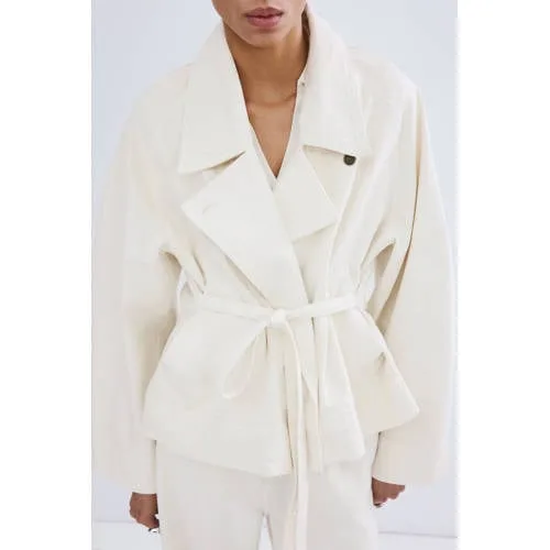 Ga voor een frisse, tijdloze laag met deze witte katoenen trenchcoat van Mango. Het korte model met rechte snit valt mooi langs het lichaam en geeft je outfit direct een verzorgde uitstraling. De soepele stof van 100 procent katoen voelt prettig aan en de volledig katoenen voering maakt de jas geschikt voor wisselende lentedagen.Doordachte details voor elke dag Kort ontwerp dat comfortabel valt boven je heup, ideaal over jurken, jeans of een pantalon Rechte snit voor een moderne, rustige look V-hals met overslagkraag en ingesneden revers voor een nette, cleane belijning Ceintuur in badjas-stijl om eenvoudig je taille te accentueren Voorste knoopsluiting zodat de jas ook mooi gesloten gedragen kan worden Twee praktische zijzakken voor je telefoon, sleutels of lipbalm Lange rechte mouwen met drukknoopdetail bij de manchetten Gemaakt van 100 procent katoen met katoenen voering voor een natuurlijk draaggevoel Effen witte kleur die makkelijk combineert met je bestaande garderobeLichte jas voor het tussenseizoenAls tussenjas is deze trenchcoat ideaal voor de lente. Draag hem open over een T-shirt en jeans op casual dagen of knoop hem dicht over een blouse en pantalon voor een meer geklede look.De herkenbare stijl van MangoMango staat bekend om moderne items met een heldere, vrouwelijke belijning. Deze trenchcoat past daar perfect in, met een combinatie van draagbaar design en zorg voor details die je dagelijks met plezier aantrekt.Een veelzijdige jas die je garderobe rustig, licht en goed gecombineerd houdt.