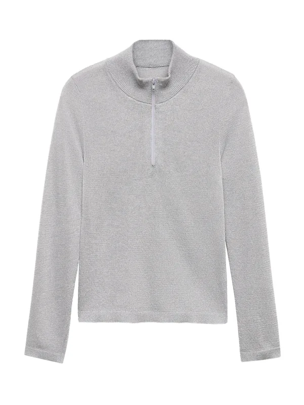 Design: Geribd ceintuurtje, Halve rits; Type sluiting: Ritssluiting; Materiaal: Viscose; Halstype: Schipperskraag; Motief: Effen; Extra's: Fully fashioned, Lurex; Pasvorm: Slanke pasvorm; Armlengte: Lange mouw; Lengte: Normale lengte