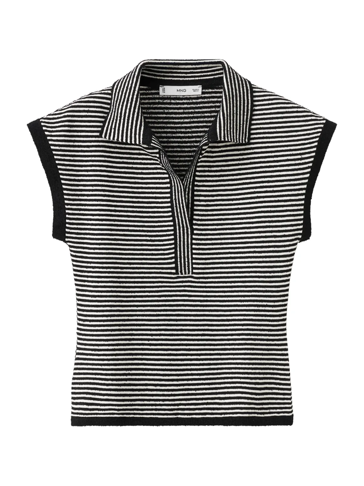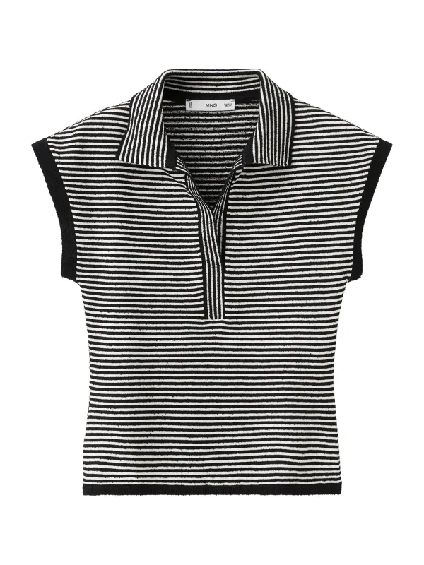 Deze gestreepte trui met polokraag van Mango is een praktische gebreide top voor elke dag. Het middengrove breisel en de rechte snit geven een ontspannen uitstraling, terwijl het gestreepte patroon in zwart voor een rustige look zorgt. De polokraag en korte kapmouwen maken deze top luchtig en comfortabel om te dragen in het voorjaar en op mildere dagen.Gebreide top met subtiele details Middengrof breisel voor een comfortabele, iets stevigere gevoel Rechtvallende pasvorm die soepel om het lichaam valt Gestreept patroon met contrast bies voor een duidelijke lijnvoering Polokraag zonder sluiting voor een verzorgde maar ontspannen stijl Korte kapmouwen die de schouders licht benadrukken Zachte stof met katoen voor een prettig huidgevoel Gebreide top zonder zakken voor een rustig silhouetMakkelijk te combineren in je dagelijkse outfitsDeze gestreepte top past goed in je dagelijkse garderobe. Draag de trui op een rechte jeans voor een casual look, of combineer met een pantalon voor een meer geklede outfit. Door de zwarte kleur en het rustige streeppatroon gebruik je deze top zowel naar je werk als in je vrije tijd.Mango: moderne stijl voor elke dagMango staat bekend om mode die trends vertaalt naar draagbare items voor elke dag. De collecties combineren een moderne uitstraling met toegankelijke ontwerpen, zodat je eenvoudig outfits samenstelt die bij jouw stijl passen. Met deze top voeg je een basisstuk met rustige uitstraling toe dat je vaak uit de kast zult pakken.Een praktische gebreide top die je moeiteloos uit de kast pakt voor al je dagelijkse plannen.