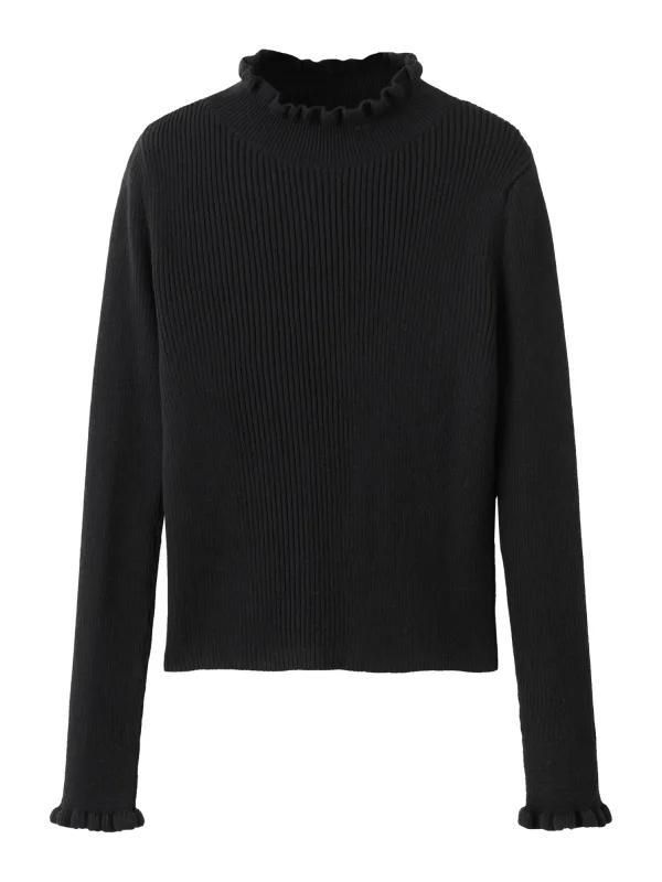 Design: Geribbelde kraag, Rechte zoom, Geribd ceintuurtje; Materiaal: Knitwear; Halstype: Opstaande kraag; Motief: Effen; Details: Ruches; Extra's: Met textuur, Voelt zacht aan; Pasvorm: Normale pasvorm; Armlengte: Lange mouw; Lengte: Normale lengte