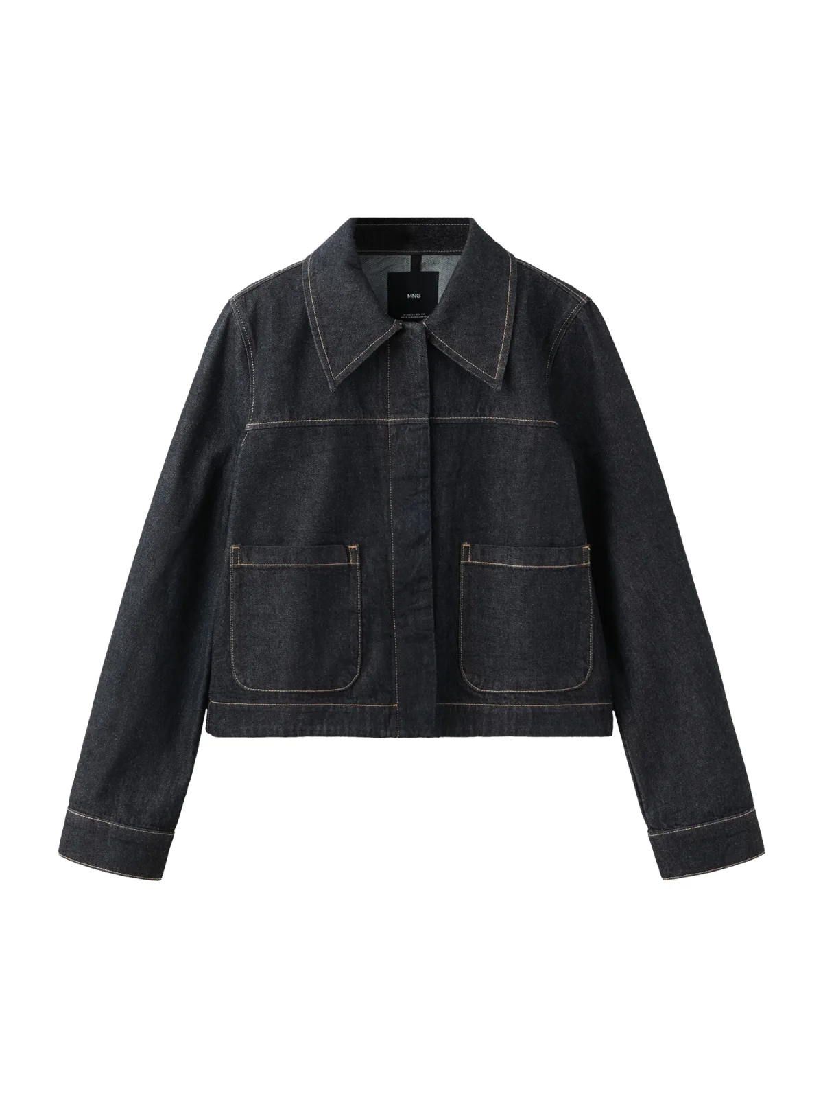 Geef je dagelijkse outfits een stoere, maar vrouwelijke basis met dit korte dark blue denim spijkerjasje voor dames van Mango. De rinse wash in dark blue denim kleurt mooi diepblauw en de getailleerde pasvorm accentueert je silhouet zonder strak te zitten. De klassieke overhemdkraag en de lange mouwen met knoopmanchetten geven het jasje een tijdloze uitstraling, terwijl de contraststiksels zorgen voor een duidelijk denim karakter.Denim essential met doordachte details Gemaakt van 100% katoen, voor een stevige, toch prettig aanvoelende denim stof Kort, getailleerd model dat mooi aansluit op de taille Rinse wash in dark blue denim voor een diepe, egale kleur Klassieke overhemdkraag en lange recht gesneden mouwen met knoopmanchetten Twee opgestikte zakken aan de voorkant voor een authentieke denim look Volledige knoopsluiting aan de voorzijde Contraststiksels die de naden en belijning extra accentueren Onderdeel van een co-ord set, geschikt voor een total lookVoor dagelijkse looks in het voorjaarDeze korte denim jas is een lichte tussenjas, geschikt voor het lenteseizoen. Het model laat zich makkelijk combineren met je dagelijkse garderobe en past goed bij de Mango co-ord items in dezelfde stof en kleur voor een complete set.Mango: eigentijdse stijl uit SpanjeMango is een internationaal modemerk met Spaanse roots, bekend om collecties die trends vertalen naar draagbare items voor elke dag. Met aandacht voor pasvorm en details biedt Mango moderne kledingstukken die steeds weer aansluiten bij het huidige modebeeld.Een veelzijdig denim jasje dat seizoen na seizoen van pas komt.