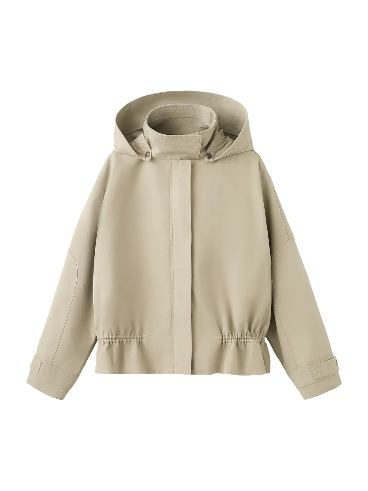 Design: Afneembare capuchon, Flare, Elastische taille/zoom, Staande kraag, Verborgen rits; Type sluiting: Ritssluiting; Voering: Licht gevoerd; Materiaal: Katoen; Motief: Effen; Extra's: Op staal naden, Gladde stof; Pasvorm: Losse pasvorm