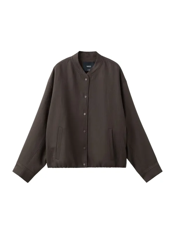 Ga voor een moderne, sportieve look met deze donkerbruine bomberjas voor dames van Mango. Het korte, oversized model geeft je outfit een ontspannen silhouet, terwijl de effen kleur ervoor zorgt dat de jas makkelijk combineert met je dagelijkse garderobe. De zachte stof met lyocel voelt soepel aan en valt mooi langs het lichaam, ideaal voor lentedagen waarop je graag in lagen kleedt.Details die je elke dag wilt dragen Oversized bombermodel voor een moderne, relaxte pasvorm Korte lengte die goed staat boven hoge tailles, zoals jeans of een pantalon Stand-up boord en ronde hals voor een cleane, eigentijdse uitstraling Lange rechte mouwen voor een rustige, minimalistische look Voorzijde met drukknoopsluiting voor snel en gemakkelijk aan- en uittrekken Zijzakken om je handen in weg te stoppen of kleine essentials bij je te dragen Buitenstof van 63% lyocel vezel, 31% viscose en 6% polyamide Voering van 100% katoen voor een prettig gevoel op de huidCasual jasje voor elke dagDeze bomberjas past perfect bij een T-shirt en straight jeans voor een casual dag, maar kan ook prima over een nette blouse en pantalon als je een sportieve twist wilt geven aan je werklook.Mango: eigentijdse stijlMango staat bekend om toegankelijke mode met een moderne, Europese uitstraling. De collecties volgen de trends, maar blijven tegelijkertijd draagbaar voor elke dag. Met deze jas kies je voor een doordacht ontwerp en materialen die fijn aanvoelen, passend bij een stijlvolle, dagelijkse garderobe.Een veelzijdig bovenstuk dat je garderobe moeiteloos aanvult in het overgangsseizoen.