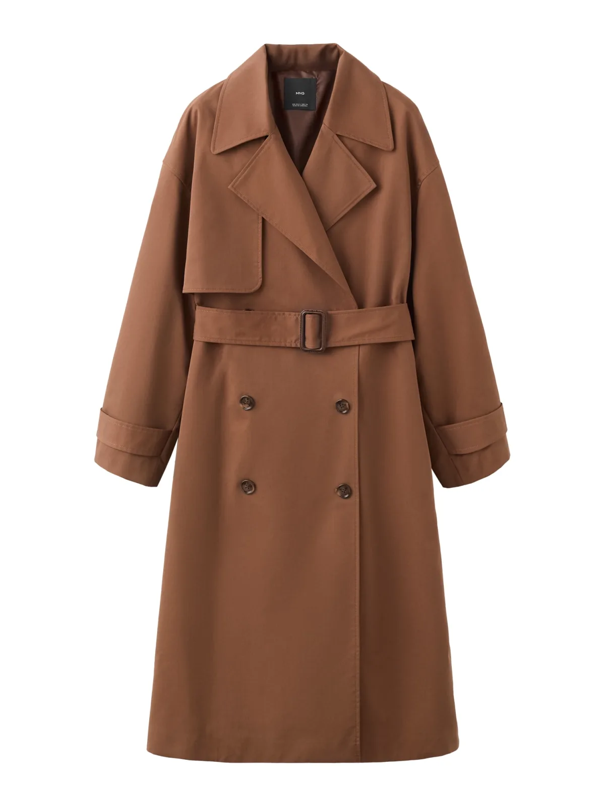 Vooral op frisse lentedagen is een goede jas onmisbaar. Deze bruine trenchcoat van Mango biedt een extra laag die je makkelijk over je favoriete outfits aantrekt. De middel-lange lengte en rechte pasvorm zorgen voor een moderne, tijdloze look die zowel naar je werk als in het weekend goed uitkomt. De katoenen stof voelt prettig aan en de neutrale bruine kleur laat zich eenvoudig combineren.Verfijnde details voor elke dag Katoenen stof met soepele touch, fijn voor dagelijks gebruik Middel-lang ontwerp met rechte snit voor een rustige, moderne uitstraling Hals met brede revers en double breasted sluiting met twee rijen knopen Verwijderbare ceintuur om je taille te accentueren wanneer je dat wilt Lange, iets wijdere mouwen met knopen als extra detail Twee praktische zijzakken om je handen in weg te steken of kleine spullen bij je te dragen Geschikt als trenchcoat én tussenjas voor het lente seizoenIdeaal voor wisselvallig weerDeze trenchcoat is geschikt als dagelijkse jas in de lente. Draag hem open over een jeans en T-shirt op een milde dag of gesloten met ceintuur wanneer het wat frisser is. De middel-lange lengte biedt net dat beetje extra bedekking zonder zwaar aan te voelen.Mango: eigentijdse mode met een rustige uitstralingMango staat bekend om eigentijdse collecties met een heldere, vrouwelijke stijl. De ontwerpen zijn goed te combineren en sluiten aan op wat je elke dag nodig hebt, van werk tot vrije tijd. Met deze jas voeg je een praktische basic toe aan je garderobe die je in meerdere seizoenen kunt dragen.Een praktische trenchcoat die je garderobe op een rustige manier aanvult.