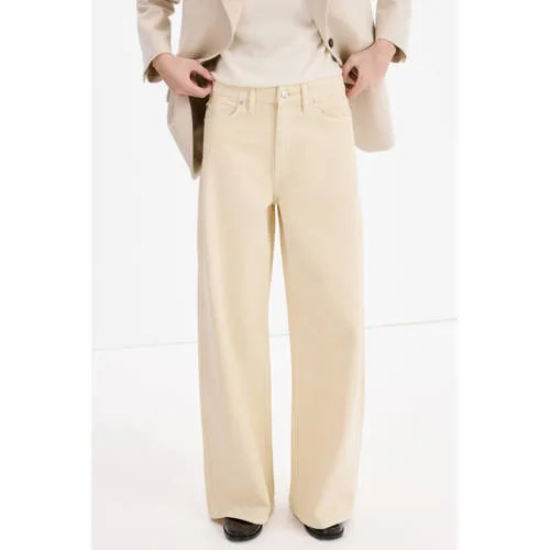 Voor een ontspannen maar verzorgde look is deze Mango wide leg damesbroek van katoen een praktische basis in je garderobe. De broek is gemaakt van een denimachtige katoenen stof in een zachte beige kleur. Het lange ontwerp met wide leg pijpen valt soepel langs het been en geeft een moderne, luchtige uitstraling. Door de hoge taille oogt je silhouet rustig en in balans, terwijl de klassieke details de broek geschikt maken voor verschillende gelegenheden.Details die het verschil maken Wide leg pasvorm met lange pijpen voor een moderne, rechte lijn langs het been Gemaakt van 100% katoen met een denimachtige structuur voor een stevige maar soepele feel Hoge taille met riemlussen zodat je eenvoudig een riem kunt toevoegen Klassieke vijfzakkenstijl met zakken voor en achter Rits- en knoopsluiting aan de voorkant voor een praktische, vertrouwde sluiting Effen beige kleur die eenvoudig te combineren is met tops, blouses en knitwearElke dag draagbaar, van werk tot weekendDeze broek is geschikt als je wilt afwisselen tussen casual en meer gekleed. Met een eenvoudig T-shirt en sneakers ontstaat een casual uitstraling. In combinatie met een blouse of blazer krijgt de wide leg broek een meer verzorgde look. De katoenen kwaliteit maakt de broek geschikt om de hele dag te dragen, of je nu op pad bent of thuis werkt.Mango: eigentijdse mode met een rustige stijlMango staat voor kleding met een moderne, toegankelijke stijl. De collecties sluiten aan op trends en blijven tegelijkertijd draagbaar voor elke dag. Door aandacht voor pasvorm en materiaal biedt Mango kleding die je steeds opnieuw kunt combineren.Een beige basisbroek die zich eenvoudig laat combineren met verschillende outfits.