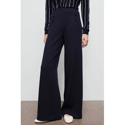 Mango wide leg high waist broek donkerblauw