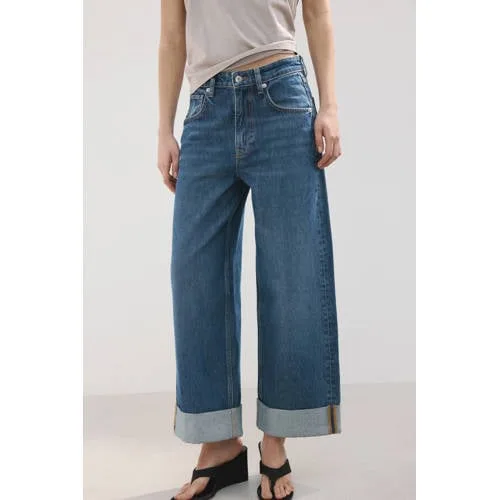 Zoek je een relaxte jeans met een moderne pasvorm voor elke dag, dan is deze wide leg jeans van Mango voor dames een fijne basis in je garderobe. De denimachtige katoenen stof in de kleur medium blue denim geeft een tijdloze uitstraling, terwijl de wijde pijpen en omgeslagen zoom zorgen voor een nonchalante look. De middelhoge taille sluit comfortabel aan en vormt een mooie basis voor zowel strakke als losvallende tops.Comfortabele pasvorm met wide leg ontwerp Gemaakt van 100% katoen, voelt stevig maar toch soepel aan Wide leg ontwerp met omgeslagen broekspijpen voor een moderne, ontspannen look Middelhoge taille met regular waist voor een comfortabele fit rond heupen en taille 5-pocket model met vijf zakken en riemlussen voor een klassieke jeansstijl Knoop- en ritssluiting voor makkelijk aan- en uittrekken Binnenlengte 68 cm, ideaal als enkel-lange jeansIdeaal voor dagelijkse outfitsDeze jeans uit de Daily collectie is gemaakt voor alledaagse momenten. Combineer met een T-shirt en sneakers voor een casual dag of kies een blouse en loafers voor een meer geklede stijl. De medium blue denim kleur laat zich gemakkelijk combineren met lichte en donkere tinten.Mango: eigentijdse stijl voor elke dagMango staat bekend om eigentijdse mode met een toegankelijke uitstraling. De collecties volgen de trends, maar blijven tegelijk draagbaar in het dagelijks leven. Zo voeg je met deze jeans een betrouwbaar en stijlvol item toe aan je kledingkast.Een lichte, wide leg jeans waarmee je moeiteloos wisselt van casual naar gekleed.