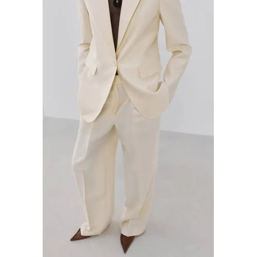 Mango wide leg low waist broek beige