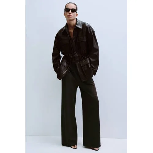 Deze donkerbruine Mango wide leg broek is een praktische basis voor elke dag. De rechte pijpen met wide leg effect geven een los silhouet, terwijl de hoge taille je een nette, verzorgde uitstraling biedt. De gebreide stof voelt soepel aan en volgt je bewegingen gemakkelijk, ideaal voor werk, thuis of onderweg.Details die je dagelijks draagt Wide leg pasvorm met rechte, lange pijpen voor een losse uitstraling Hoge taille met elastische tailleband, zonder sluiting, voor snel en makkelijk aan- en uittrekken Gemaakt van 50% viscose, 44% polyester en 6% elastomeer voor een zachte stof met lichte stretch Effen donkerbruine kleur, eenvoudig te combineren met zowel lichte als donkere tops Voorzien van zakken voor en achter en sierzakken voor een rustige, verzorgde uitstraling Lang design dat mooi valt over sneakers, loafers of enkellaarsjesOntspannen pasvorm voor vele momentenDeze broek leent zich goed voor dagen waarop je je vrij wilt bewegen. De elastische tailleband geeft ruimte, terwijl de lange, rechte pijpen voor een gestroomlijnd geheel zorgen. Geschikt voor kantoor, een dag in de stad of een comfortabele dag thuis.Mango: eigentijdse mode met aandacht voor detailMango staat bekend om moderne collecties met een heldere stijl en doordachte details. De ontwerpen sluiten aan bij het dagelijks leven en bieden kledingstukken die je vaak en lang kunt dragen. Zo voeg je met deze broek een goed te combineren basic toe aan je garderobe.Een zacht vallende, donkerbruine broek die gemak en stijl combineert in jouw dagelijkse outfits.