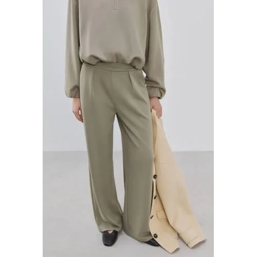 Deze comfortabele, lange broek van Mango is een basis voor elke dag. De Mango wide leg broek dames is gemaakt van een soepele gebreide stof en heeft een hoge taille met elastiek. Dankzij het rechte, wide leg model valt de broek mooi langs het lichaam en voelt het geheel luchtig en ontspannen aan. De effen kaki kleur maakt combineren eenvoudig, of je nu voor casual of iets meer gekleed gaat.Details die het verschil maken Rechte wide leg pasvorm voor een ontspannen en moderne look Hoge taille met elastische tailleband, zonder knoop of rits Lange pijpen die mooi recht langs het been vallen Effen kaki kleur, makkelijk te combineren met tops en truien Met sierzakken en zakken voor en achter voor een verzorgde uitstraling Gemaakt van 50% viscose, 44% polyester en 6% elastomeer voor een soepele stretchCasual tot gekleed in één broekDeze broek laat zich eenvoudig aanpassen aan jouw dag. Met een T-shirt en sneakers ontstaat een relaxte outfit. In combinatie met een bijpassende top uit dezelfde serie creëer je een total look die verzorgd oogt, zonder dat het te formeel wordt.Mango, eigentijdse stijlMango staat bekend om moderne collecties met aandacht voor draagbaarheid en stijl. De ontwerpen sluiten aan op actuele trends, maar blijven goed te combineren met de rest van je garderobe.Een veelzijdige basisbroek die je het hele seizoen kunt dragen.
