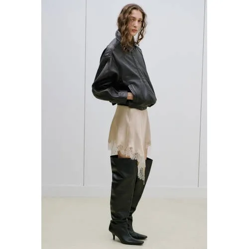 Deze lichtbeige rok van Mango verandert je outfit direct naar een meer geklede stijl. De zachte, glanzende stof en de verfijnde kanten details maken de sliprok met overslag en split geschikt voor momenten waarop je net iets meer verzorgd voor de dag wilt komen. De kortere lengte en het asymmetrische ontwerp zorgen voor een moderne uitstraling, terwijl de subtiele split aan de onderkant je benen mooi laat uitkomen.Verfijnde details in een zachte glans Kort model dat tot boven de knie valt voor een luchtige, vrouwelijke look Zachte satijnachtige stof met lichte glans voor een stijlvolle uitstraling Kanten biesjes langs de zoom voor een verfijnd, feestelijk accent Asymmetrische overslag en split aan de voorkant voor een speels effect Zijritssluiting waardoor de rok mooi aansluit rond je taille en heupen Effen lichtbeige kleur die makkelijk te combineren is met tops en blouses Ontworpen als wikkelrok, maar met een vaste pasvorm voor extra draaggemakVoor feestjes en avondjes uitGeschikt voor een etentje, feestje of een avond uit. Combineer deze rok met een aansluitende top en hakken voor een feestelijke look of draag hem met een eenvoudig T-shirt en loafers als je het wat rustiger wilt houden.Mango: eigentijdse mode voor elke dagMango staat bekend om moderne collecties die trends vertalen naar draagbare stukken voor alledag. Met deze rok voeg je een goed combineerbaar item toe aan je garderobe dat past bij verschillende gelegenheden en moeiteloos aansluit op de rest van je kledingkast.Een rok die je het hele seizoen door kunt dragen.