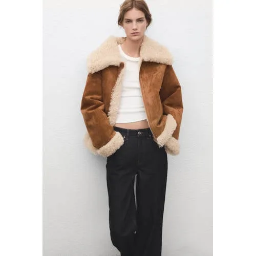 Ga warm en verzorgd de deur uit met deze Mango suèdine lammy coat in bruin. De jas heeft een rechte pasvorm en een overslagkraag met schapenvachteffect, wat direct voor een zachte en behaaglijke uitstraling zorgt. De teddy details aan de kraag en binnenkant maken de jas extra geschikt voor koude winterdagen, terwijl de suèdine buitenkant een rustige, moderne look geeft.Warme winterjas met teddy details Dubbelzijdig ontwerp met suèdine buitenkant en schapenvachteffect aan de binnenzijde en kraag Rechte pasvorm voor comfortabele bewegingsvrijheid, ook over een dikkere trui Overslagkraag met teddy afwerking voor extra warmte rond de hals Lange mouwen en twee zakken voor praktische opbergruimte en warme handen Ritssluiting aan de voorkant zodat de jas goed aansluit tegen de kou Bruine kleur die eenvoudig te combineren is met zowel casual als meer geklede outfitsComfortabel de winter doorDeze lammy coat is bedoeld als winterjas en is ideaal voor dagelijks gebruik, van werk tot weekenden buiten de deur. De rechte pasvorm en langere mouwlengte zorgen voor comfort, terwijl de rits en zakken het dragen in koudere seizoenen praktisch maken.Mango: eigentijdse mode met oog voor detailMango staat bekend om moderne collecties met heldere lijnen en doordachte afwerkingen. Deze jas past daar goed bij door de combinatie van suèdine, teddy details en een functioneel ontwerp dat klaar is voor dagelijks gebruik in de winter.Een jas die warmte, zachtheid en een verzorgde uitstraling samenbrengt in één winterse essential.