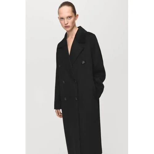 Deze handgemaakte Mango dames jas is een praktische basis voor koude dagen en frisse tussenperiodes. De mantel heeft een oversized design met een diepe V-hals en klassieke reverskraag, wat zorgt voor een moderne, ontspannen pasvorm. De wolblend stof voelt stevig en zacht aan en is geschikt voor herfst, winter en de koelere lentedagen. In zwarte kleur draag je deze jas eenvoudig over verschillende outfits, van jeans tot een nette broek of jurk.Details die elke dag werken Gemaakt van een wolblend, voor een warme en aangename laag op koudere dagen Oversized design voor een relaxed silhouet, ook geschikt over een dikke trui V-hals met reverskraag en revers met inkeping voor een uitstraling in mantelstijl Twee rijen knopen aan de voorkant voor een double breasted vormgeving Twee praktische zijzakken om handen warm te houden of kleine spullen mee te nemen Lange mouwen die goed aansluiten bij het langere mantelmodel Kleur zwart, eenvoudig te combineren met verschillende stijlen en kleurenEen mantel voor meerdere seizoenenDeze jas werkt goed als winterjas met een dikke trui eronder, maar ook als tussenjas in de herfst en lente. Het oversized model geeft genoeg ruimte om te lagen, terwijl de wolblend helpt om warmte vast te houden als de temperatuur daalt.Mango met aandacht voor dagelijks draaggemakMango staat bekend om moderne collecties waarin trends en draagbaarheid samenkomen. De focus ligt op verzorgde pasvormen, nette afwerking en materialen die passen bij dagelijks gebruik. Zo ontstaat kleding die je vaak kunt dragen en op verschillende manieren kunt combineren.Een mantel die je gemakkelijk aantrekt bij wisselend weer en die moeiteloos past bij de rest van je garderobe.