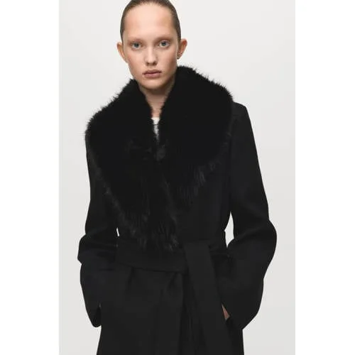 Maak je klaar voor elke feestelijke gelegenheid met deze lange, zwarte Mango mantel jas dames. De mantel heeft een rechte pasvorm en is gemaakt van Italiaanse wol van Manteco, gecombineerd met een zachte voering voor prettig draagcomfort op koelere dagen. De V-hals met klassieke revers zorgt voor een rustige belijning, terwijl de ceintuur in badjasstijl de taille naar wens kan benadrukken. Dankzij de afneembare kraag van synthetisch bont pas je de uitstraling eenvoudig aan het seizoen en de gelegenheid aan.Doordachte afwerking en praktische details Lange mantel met rechte snit, passend over jurken, pakken en andere geklede outfits Gemaakt van Italiaanse wollen stof van Manteco met comfortabele voering voor extra warmte V-hals met reverskraag en inkeping voor een heldere, rustige lijn langs het bovenlijf Afneembare kraag van imitatiebont om te variëren in uitstraling en warmte Ceintuur in badjasstijl om de taille naar wens strakker of losser te dragen Twee zakken aan de voorkant voor je handen of kleine dagelijkse spullen Verkrijgbaar in diverse maten, zodat dezelfde stijl voor meerdere maatvoeringen beschikbaar is Geschikt als tussenjas en wintermantel in de herfst, winter en op frissere lentedagenGeschikt voor feest, werk en avondafsprakenDe mantel is onderdeel van een collectie voor feestelijke en formele momenten en sluit mooi aan over een avondjurk, jumpsuit of nette outfit. De donkere kleur laat zich gemakkelijk combineren en de langere lengte bedekt een groot deel van je kleding, zodat je geheel verzorgd oogt zodra je naar buiten stapt.Mango als betrouwbare modekeuzeMango ontwikkelt collecties met een eigentijdse, toegankelijke stijl, met aandacht voor pasvorm en draagbaarheid. Het merk biedt kleding die aansluit bij verschillende gelegenheden, van werkdag tot speciale avond, met ontwerpen die zijn afgestemd op dagelijks gebruik en wisselende trends.Een veelzijdige mantel die je garderobe uitbreidt met een jas voor formele en feestelijke momenten gedurende het hele jaar.