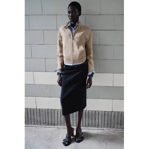 Deze zandkleurige linnen jas voor dames van Mango is een lichte tussenlaag die je garderobe rustig en modern houdt. De mix van 55% linnen en 45% lyocell vezel geeft de stof een soepele, luchtige feel, terwijl de 100% katoenen voering net wat extra comfort biedt. De cropped lengte en rechte snit zorgen voor een eigentijdse look die mooi valt op een hoge taille broek of rok.Verfijnde details voor elke dag Gemaakt van 55% linnen en 45% lyocell vezel met een voering van 100% katoen Zandkleurige effen stof die makkelijk te combineren is Cropped lengte voor een moderne, lichte uitstraling Mao kraag met knoopsluiting bij de hals voor een nette afwerking Rechte mouwen en rechte snit voor een rustige, tijdloze pasvorm Voorzien van ritssluiting aan de voorkant Twee praktische zakken aan de voorkant Geschikt als tussenjas en zomerjasLicht jasje voor lente en zomerdagenDeze jas is ideaal voor lentedagen en frissere zomeravonden. Het luchtige materiaal voelt prettig aan wanneer de temperaturen oplopen, terwijl de voering net dat beetje extra warmte geeft als het nog niet hoogzomer is. Draag de jas open over een T-shirt of gesloten met de rits en halsknoop voor een wat meer geklede uitstraling.Mango: eigentijdse stijl met een rustige basisMango staat bekend om moderne collecties met een toegankelijke uitstraling. De ontwerpen combineren heldere lijnen met doordachte details, zodat je kledingkastvriendelijk en stijlvol blijft. Deze jas past daar precies in, met een ontwerp dat meerdere seizoenen meegaat en makkelijk te stylen is.Een lichte jas waarmee je eenvoudig een verzorgde, ontspannen look creëert.