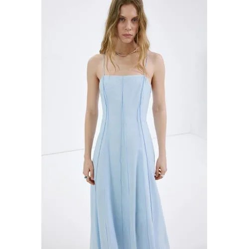 Maak je outfit klaar voor een speciale gelegenheid met deze lichtblauwe midi jurk van Mango. De jurk heeft een verfijnde A-lijn die soepel langs je lichaam valt en een midi-lengte die zorgt voor een elegante uitstraling. De stof is gemaakt van een combinatie van lyocell en een glad materiaal, met een voering van 100% katoen, waardoor het geheel zacht en comfortabel aanvoelt op de huid.Verfijnde details voor feestelijke momenten Midi-ontwerp met A-lijn, voor een vrouwelijke en luchtige look Lichtblauwe effen kleur die makkelijk te combineren is met sieraden en schoenen Fijne spaghettibandjes en een vierkante hals voor een moderne, open halslijn Mouwloos ontwerp, ideaal voor warme dagen of onder een elegant jasje Voering van 100% katoen voor een prettig draaggevoel Geen sluiting, de jurk trek je eenvoudig over het hoofd aan Onderdeel van de feest- en evenementencollectie van MangoVoor bruiloften, diners en zomerse eventsDeze jurk past goed bij momenten waarop je net iets gekleder wilt verschijnen, zoals een bruiloft, een etentje of een zomers tuinfeest. Met sandalen en een kleine schoudertas creëer je een lichte, zomerse look, terwijl hakken en een clutch de outfit direct een meer formele uitstraling geven.Mango: eigentijdse mode met aandacht voor detailMango staat bekend om moderne collecties met een heldere stijl en doordachte pasvormen. De items sluiten aan bij hedendaagse trends, maar blijven tegelijk draagbaar in het dagelijks leven. Met deze jurk haal je een kledingstuk in huis dat stijl en comfort combineert in een tijdloos ontwerp.Een sfeervolle keuze wanneer je op zoek bent naar een elegante jurk voor bijzondere momenten.