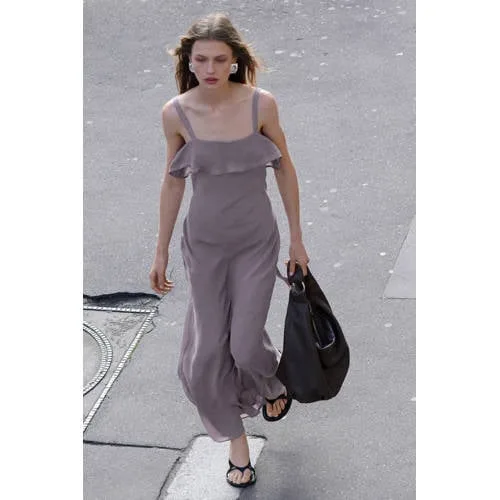 Deze lange lila zomerjurk van Mango is een lichte optie voor zonnige dagen en speciale momenten. De jurk heeft een recht, lang ontwerp dat soepel langs het lichaam valt. De zachte lyocellblend en viscose zorgen voor een luchtig gevoel, terwijl de binnenvoering discreet extra comfort geeft. De vierkante halslijn met ruches en de fijne bandjes zorgen voor een nette afwerking die niet overheersend is.Verfijnde details voor zomerse dagen Lange jurk met rechte snit voor een rustige, langgerekte look Zachte lyocellblend met viscose die licht en soepel aanvoelt Vierkante halslijn met ruches voor een subtiel speels detail Fijne bandjes die de schouders vrij laten Volledig gevoerd voor extra draagcomfort en meer zekerheid Effen lila kleur, goed te combineren met neutrale of metallic accessoires Geschikt voor gelegenheden zoals een bruiloft, zomerse party of etentjeVan bruiloftsgast tot zomerse borrelDeze jurk leent zich voor verschillende zomerse momenten. Combineer met sandalen met hak en een kleine clutch voor een bruiloft, of draag er platte sandalen en een licht vest bij voor een borrel of etentje op het terras.Mango: mode voor alledaags en bijzonderMango ontwerpt collecties die inspelen op trends en tegelijk draagbaar blijven. De items combineren moderne lijnen met toegankelijke ontwerpen voor dagelijkse momenten en speciale gelegenheden. Deze jurk sluit aan bij een garderobe waarin je gemakkelijk wisselt tussen casual en gekled.Een luchtige keuze voor warme dagen waarop je er verzorgd uit wilt zien.