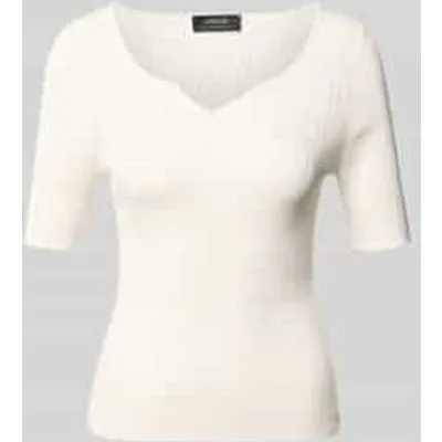 dames gebreid shirt van Marc Cain;Viscosemix;nauwsluitend model;structuurpatroon;1/2-mouwen;V-hals;Label-detail;ruglengte bij maat 36: 50 cm;mouwlengte bij maat 36: 27 cm