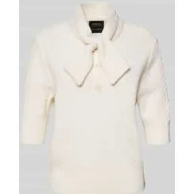Gebreide damespullover van Marc Cain;Mix van scheerwol en kasjmier;Regular fit;Opstaande kraag;Strik;Knoopsluiting;1/2-mouw;Ruglengte bij maat 36: 53 cm;Mouwlengte bij maat 36: 32 cm