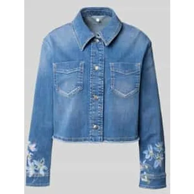 Dames jeansjack van Marc Cain;Katoenmix met stretch;recht model;kentkraag;knoopsluiting;borstzakken;franjesrand;motiefprint;ruglengte bij maat 36: 47 cm;schouderbreedte bij maat 36: 40 cm;borstwijdte bij maat 36: 48 cm;Mouwlengte bij maat 36: 56 cm
