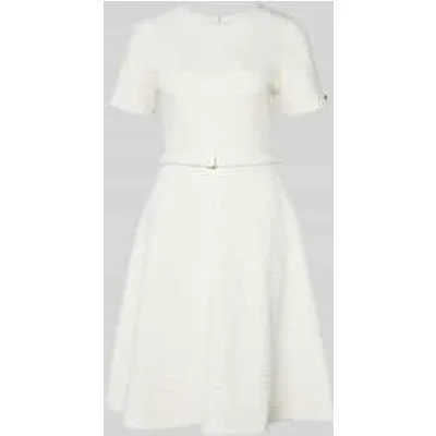 Jurk van Marc Cain;Elastische katoenmix;A-lijn;Getailleerde pasvorm;Knielang;Design met korte mouwen;Ronde hals;Logodetail;Afneembare stoffen riem;Ruglengte bij maat 36: 97 cm;Borstomvang bij maat 36: 43 cm;Mouwlengte bij maat 36: 22 cm