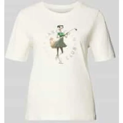 Dames T-shirt van Marc Cain;Puur katoen;Regular Fit;Met siersteentjes;Ronde hals;Motiefprint;Ruglengte bij maat 36: 56 cm