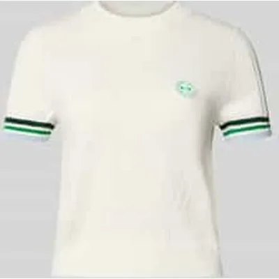 Dames T-shirt van Marc Cain;Katoenmix met wol;Regular Fit;Logo-applicatie;tricotlook;Ronde hals;Ruglengte bij maat 36: 48 cm;Mouwlengte bij maat 36: 16 cm
