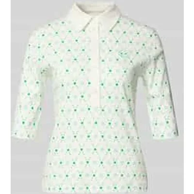 Dames Poloshirt van Marc Cain;Elastische katoenmix;Slim Fit;Logo-applicatie;All-over motiefprint;Halflange mouwen design;Polokraag;Ruglengte bij maat 36: 56 cm