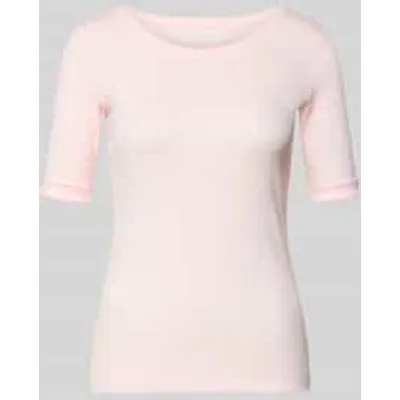 Dames T-shirt van Marc Cain;look: effen;pasvorm: slim fit;applicatie: labelapplicatie;Hals: ronde hals;mouwvorm: 3/4-mouw;Materiaalverwerking: Jersey;Materiaal: Katoenmix